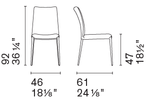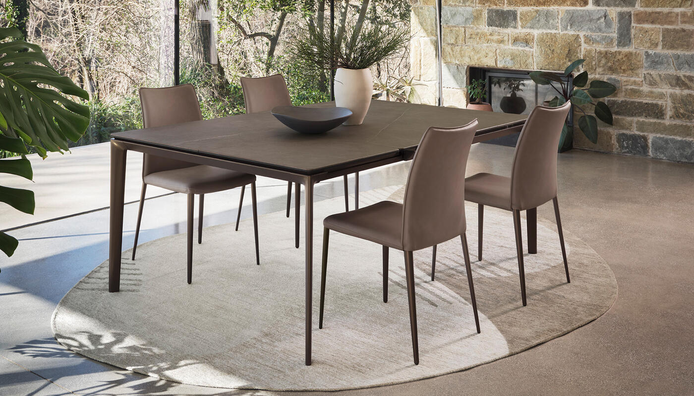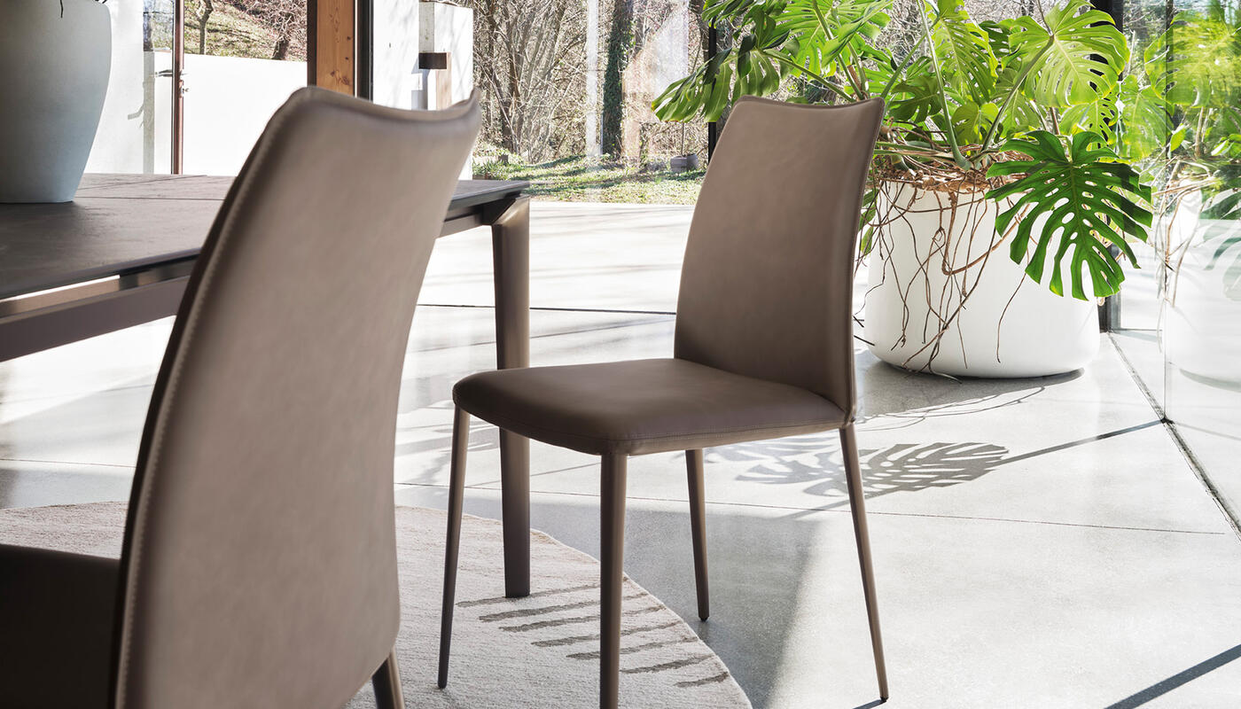 Dynamic lines, a flexible backrest and a seat with elastic springs, Fay is a dining chair that is able to accommodate even the most relaxed of sitting positions. Conical metal legs give it a slender profile, making it suitable for elegantly complementing larger tables.