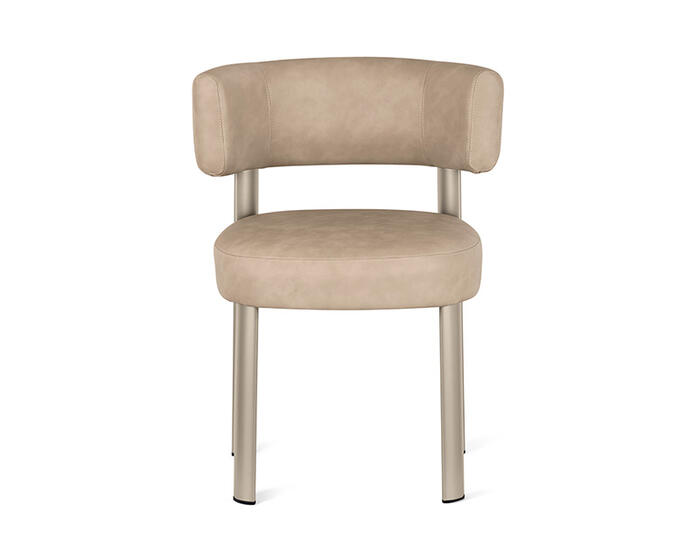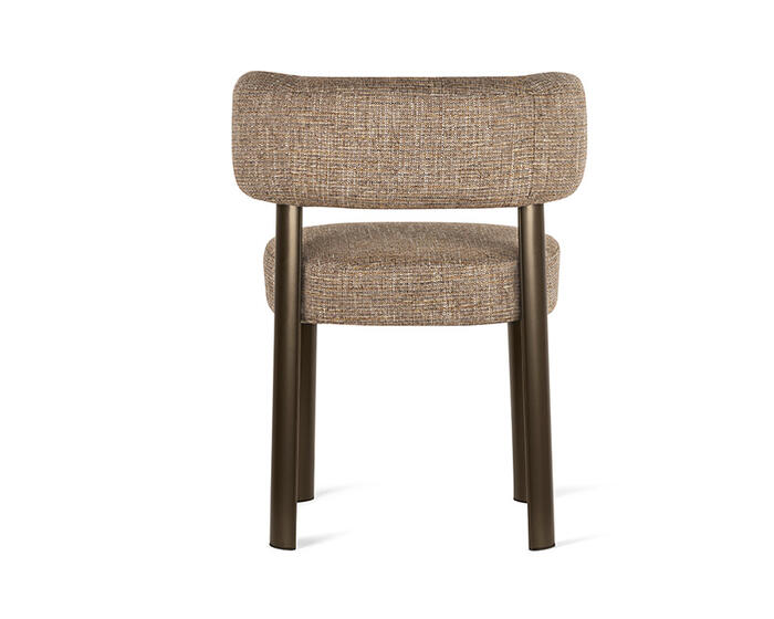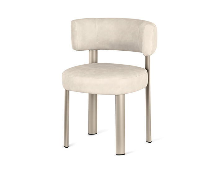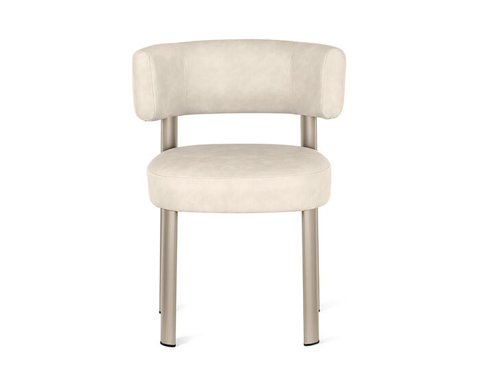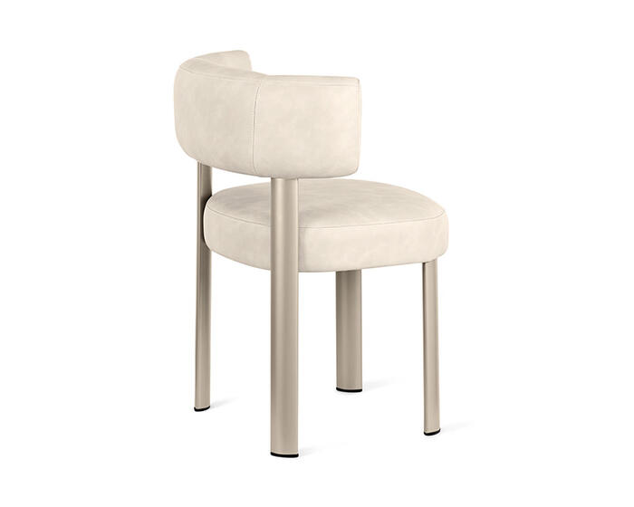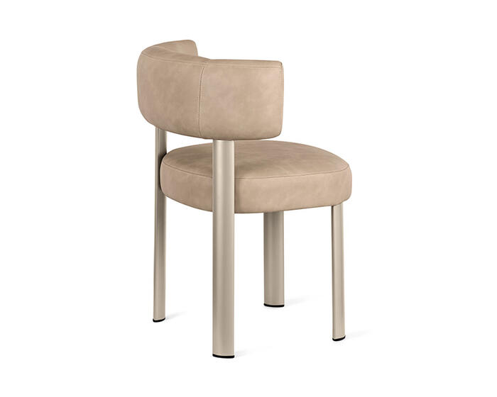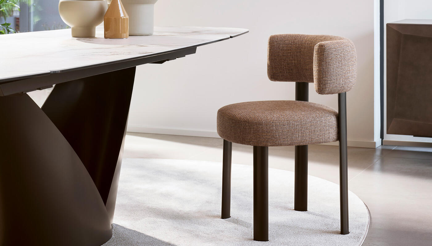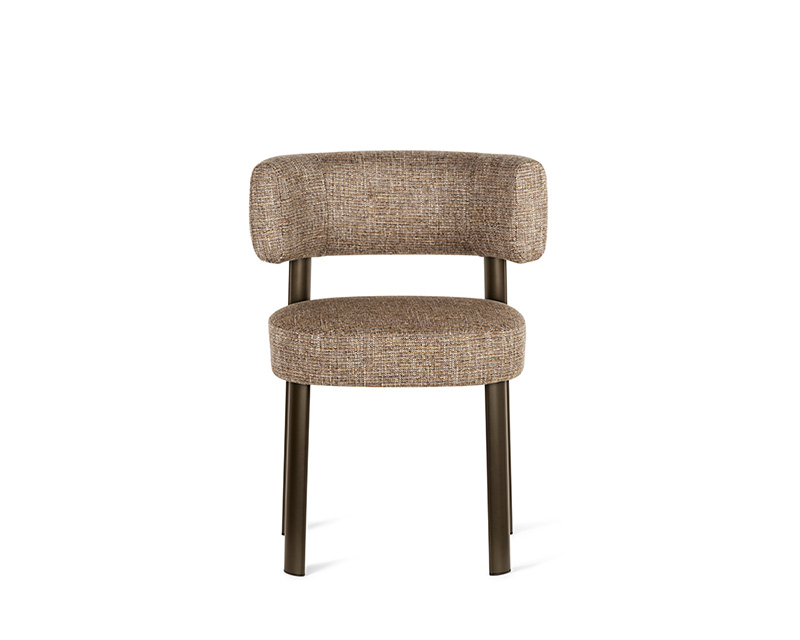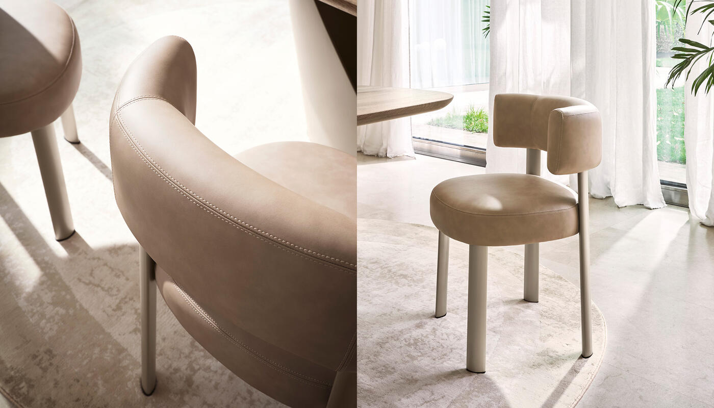 The Glen chair features a minimalist design. Lines and volumes provide it with a bold character and create a visual balance between solidity and lightness. The pure, geometric shape gives rise to a curved seat and backrest, the distinguishing feature of the design. Its wrap-around shape adds a harmonious look to the chair and provides ergonomic support, adapting to the natural posture of the body.