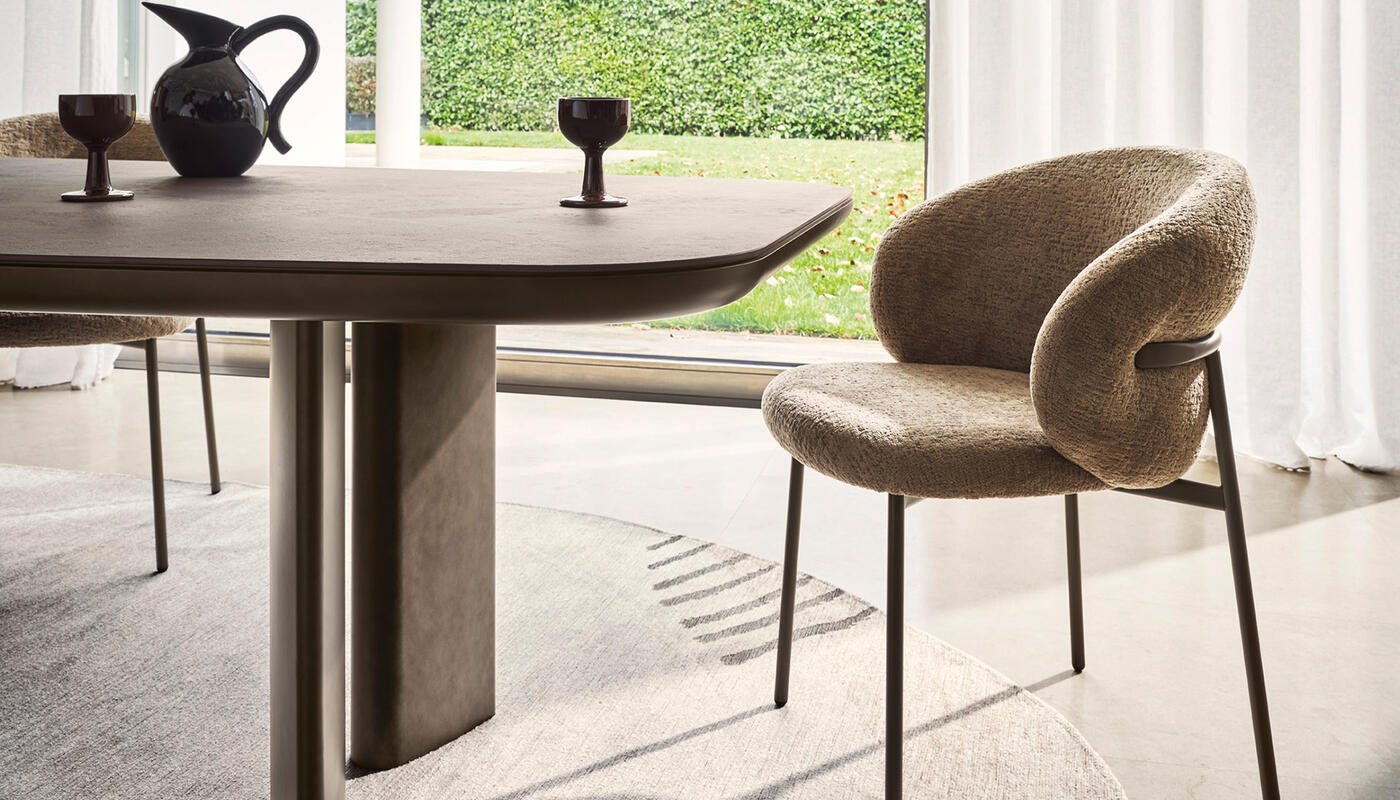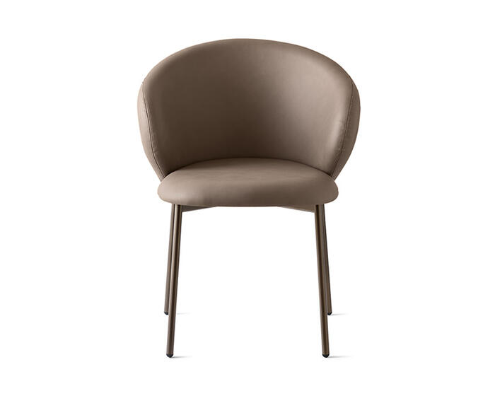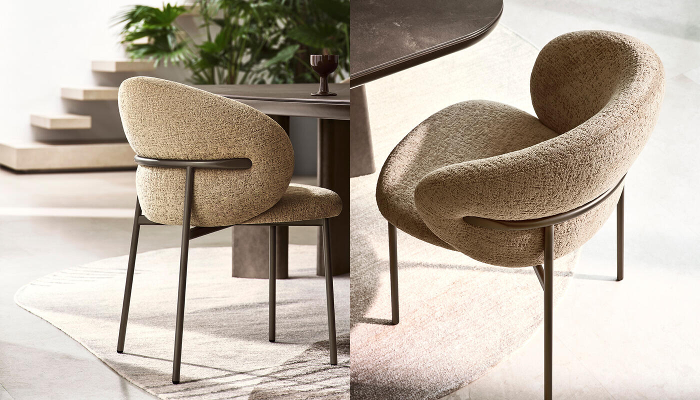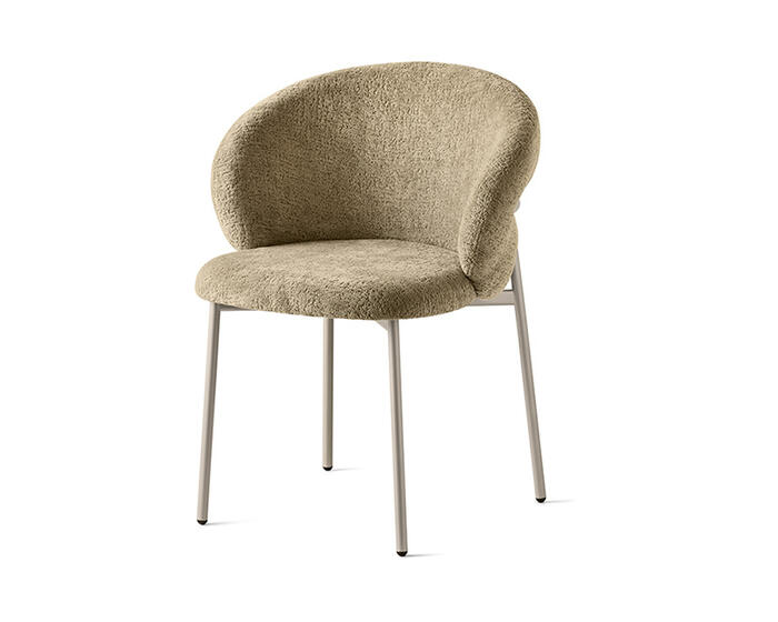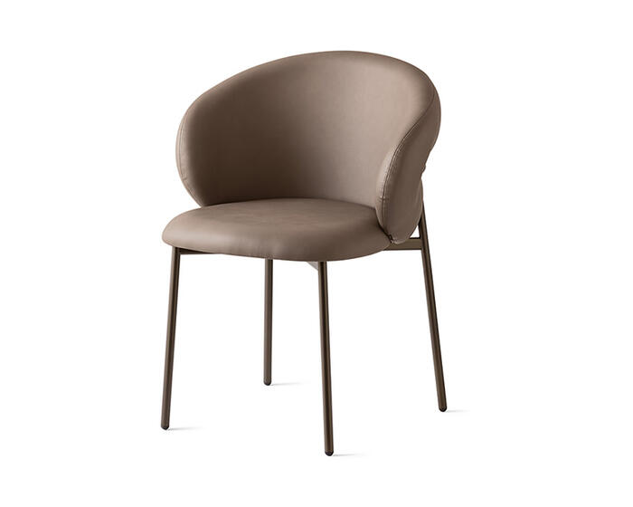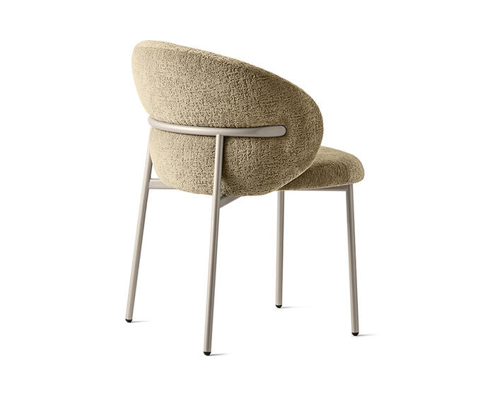 The full-back OLEANDRO chair with metal frame combines clean lines with inviting comfort. Its padded seat and backrest offer a soft, supportive sit, while the slim metal structure adds a sleek, contemporary edge. A subtle detail at the top of the backrest frame gives it a refined finish. Available in a range of upholstery options, it’s a modern classic made to suit any space.