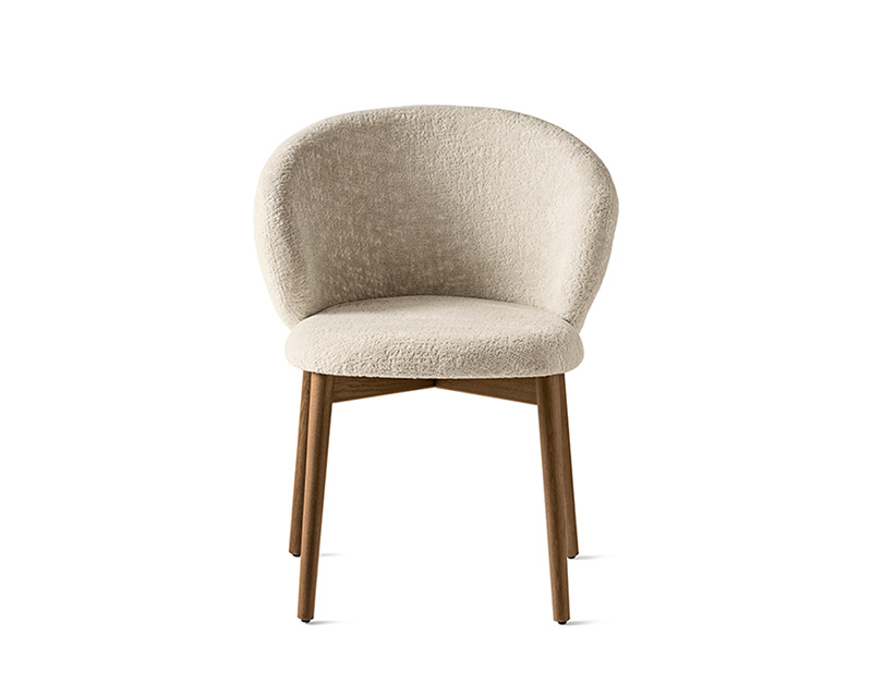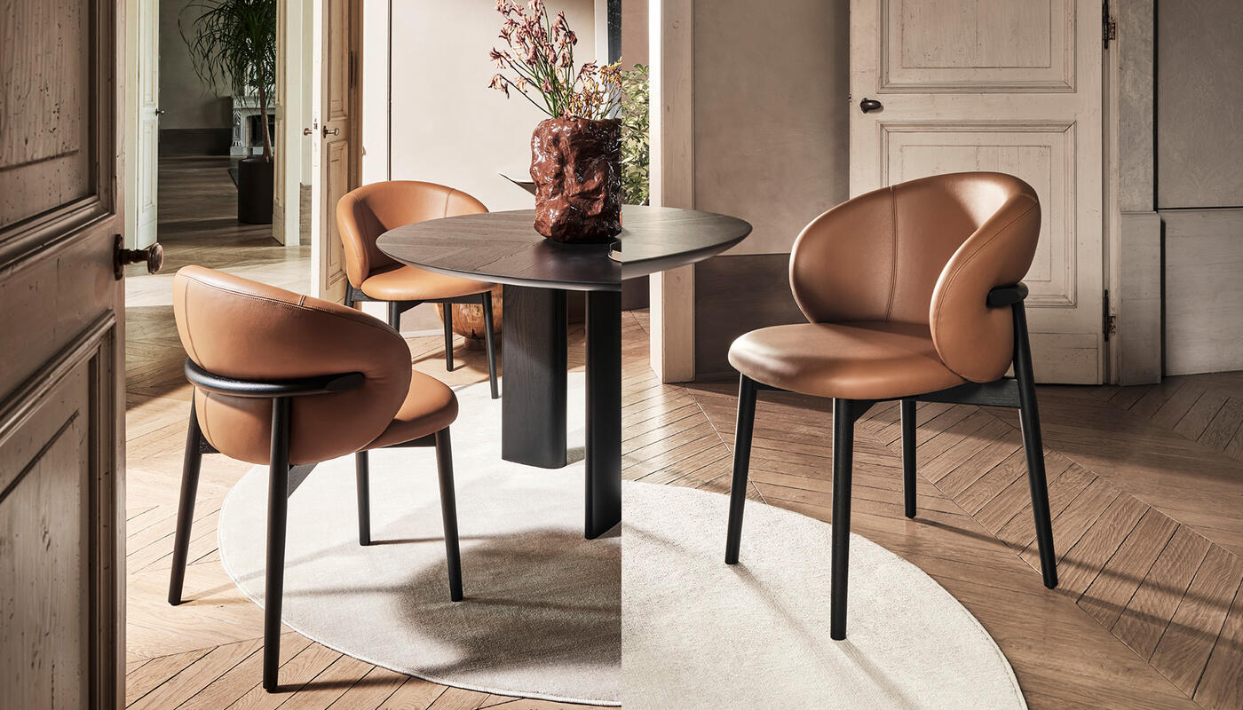 The full-back OLEANDRO chair pairs solid wood craftsmanship with generous, wraparound comfort. Its fully padded seat and backrest offer a soft, supportive feel, while the refined detail at the top of the wooden frame adds a subtle design touch. With a wide range of upholstery options, it’s a versatile piece that brings warmth and poise to any dining setting.