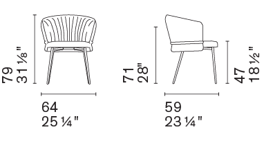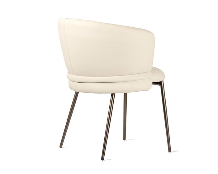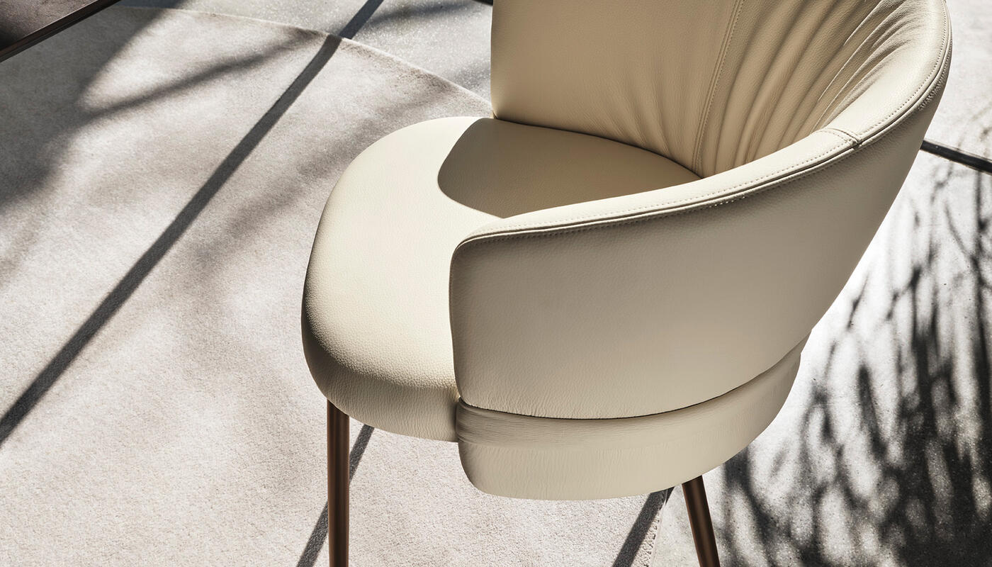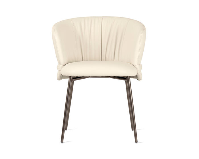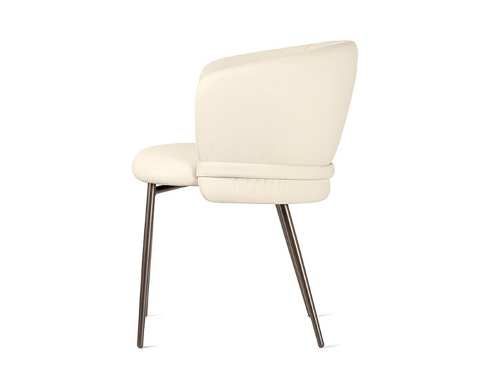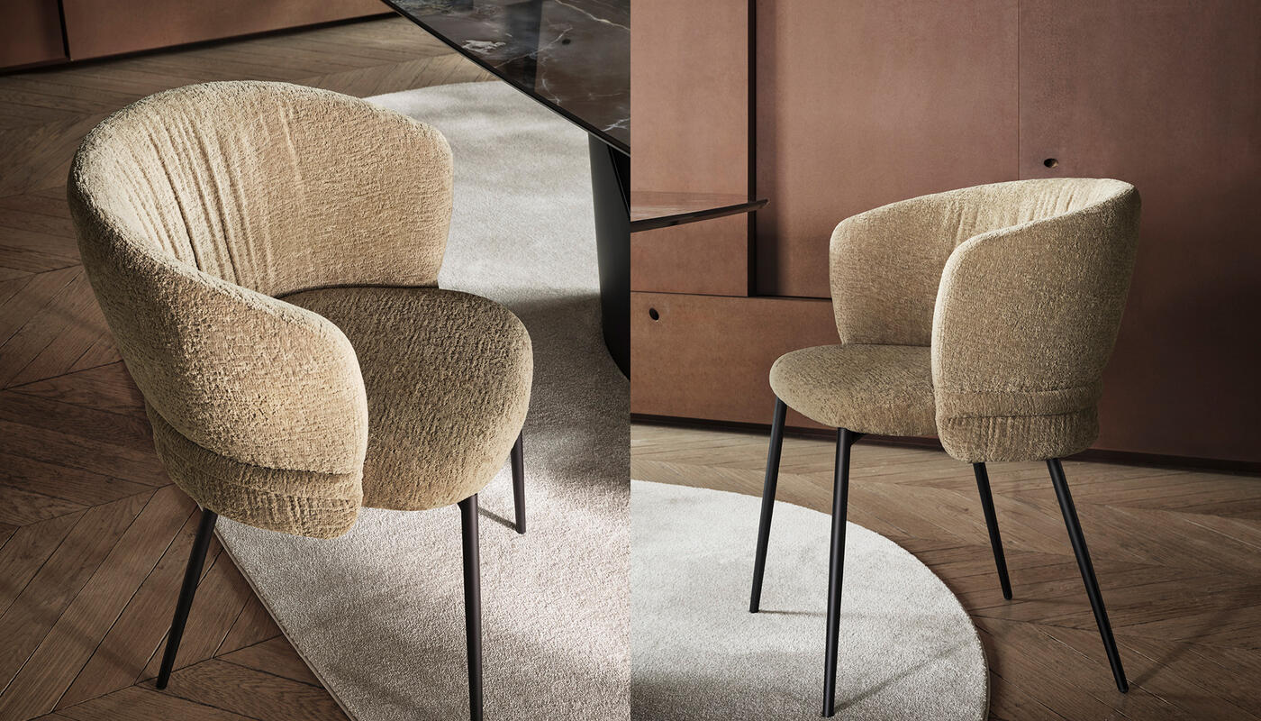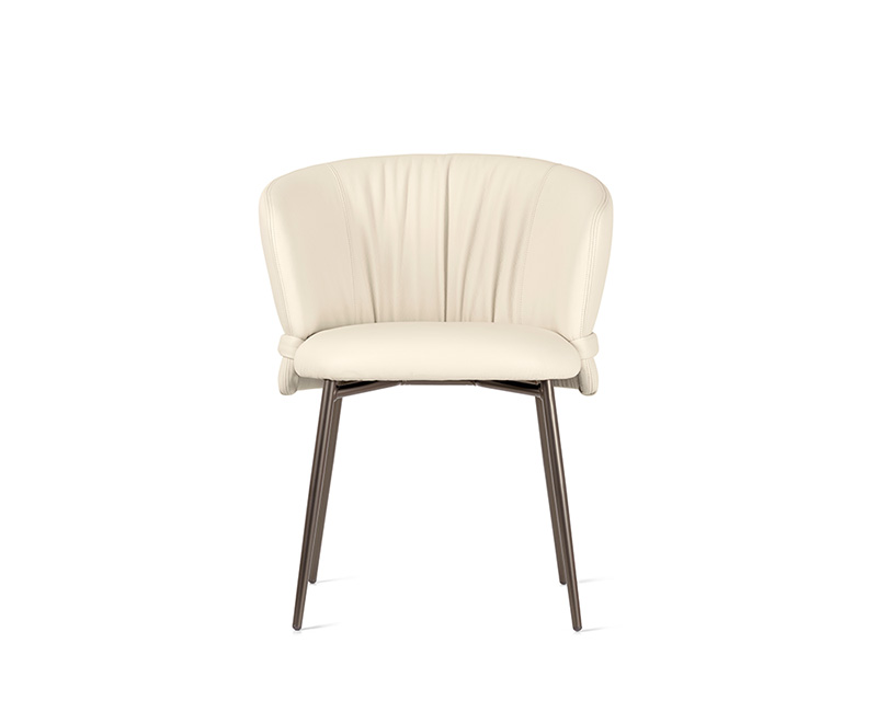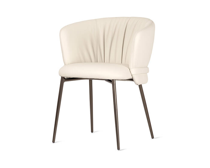 Vanilla is a generously proportioned chair that offers the comfort of a dining armchair in a refined, contemporary form. Drawing inspiration from the world of fashion, its defining detail is the softly ruched upholstery, complemented by a horizontal element that wraps the backrest like a tailored belt. Available with wooden or metal legs, Vanilla conveys a quiet, considered elegance suited to carefully curated dining interiors.