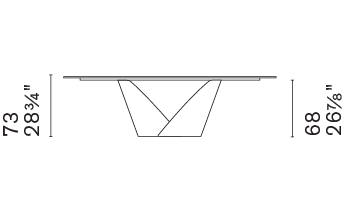 A prominent table, designed to be the centrepiece in the contemporary living space. Calla features a base that resembles a flower – robust yet light, it consists of two metal blades which, as petals do, interlock, creating a chalice shape that opens out upwards, alluding to vitality and rebirth.