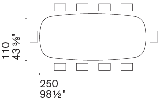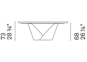 A prominent table, designed to be the centrepiece in the contemporary living space. Calla features a base that resembles a flower – robust yet light, it consists of two metal blades which, as petals do, interlock, creating a chalice shape that opens out upwards, alluding to vitality and rebirth.