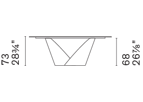 A prominent table, designed to be the centrepiece in the contemporary living space. Calla features a base that resembles a flower – robust yet light, it consists of two metal blades which, as petals do, interlock, creating a chalice shape that opens out upwards, alluding to vitality and rebirth.