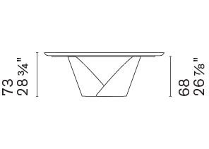 A prominent table, designed to be the centrepiece in the contemporary living space. Calla features a base that resembles a flower – robust yet light, it consists of two metal blades which, as petals do, interlock, creating a chalice shape that opens out upwards, alluding to vitality and rebirth.