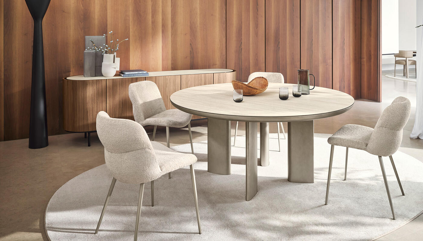 A table with a bold yet sober and elegant presence, which can be easily paired with any of the chairs in the Calligaris collection.