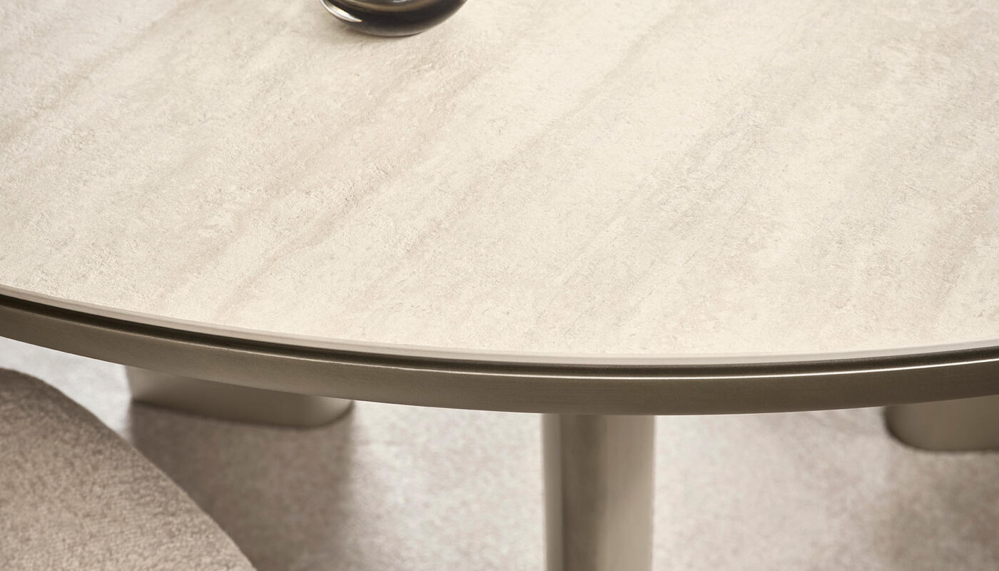 Sandy is a collection of tables that feature a teardrop leg, a cross-section with a sophisticated design that can accommodate different table top geometries – rectangular, round or oval, both fixed and extendable.