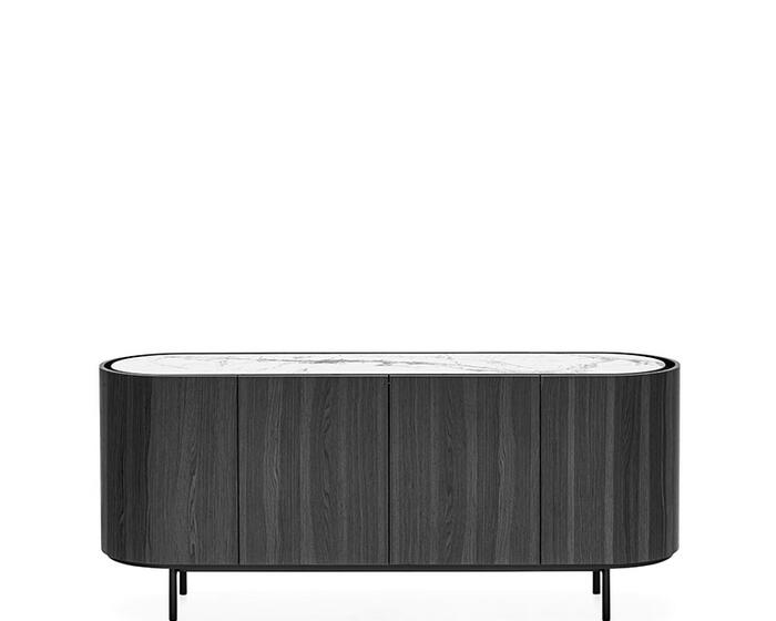 Gracefully oval and softened by subtle curves, Lake is a sideboard designed to live beautifully in any setting. Its recessed ceramic top introduces a practical gesture—creating space to open drawers and doors without handles—while the raised base lends lightness to its silhouette. Fully veneered and finished on all sides, Lake is as refined at the center of a room as it is against a wall.