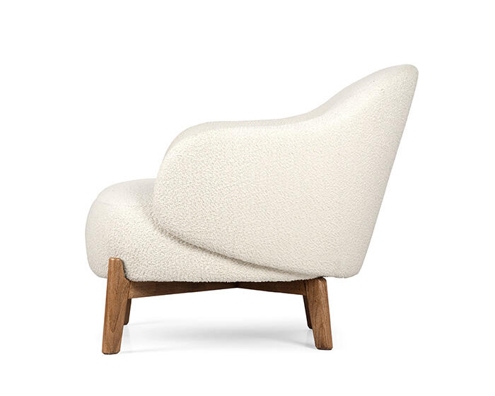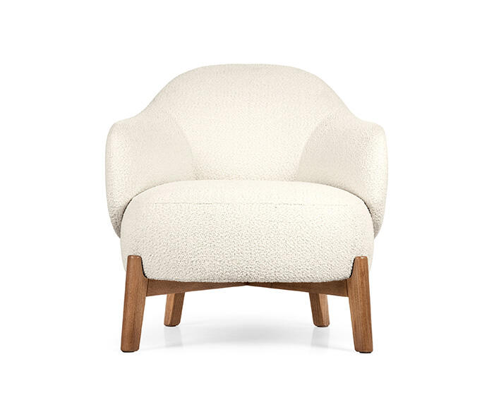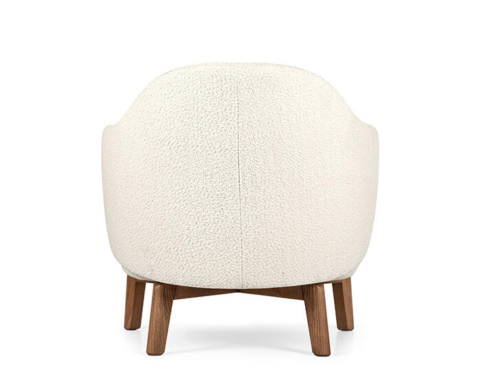 Holly Fab translates the soft elegance of the Holly family into a more generous, relaxed form. Inspired by 1950s design, the armchair is defined by a wrap-around backrest that flows seamlessly into the armrests, creating an open yet embracing silhouette. Expanded proportions enhance its leisurely character, while the subtly raised front foot adds a refined architectural detail. Designed for unhurried moments, Holly Fab balances comfort with a quietly expressive presence.