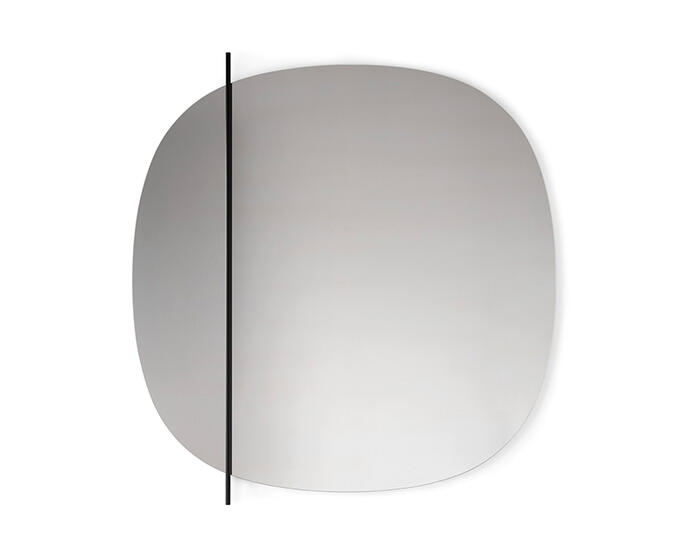 Softly rounded glass paired with a slender metal rod gives the Vanity large square mirror its distinctive character. This deliberate contrast introduces a contemporary edge, balancing gentle contours with a precise, graphic detail.