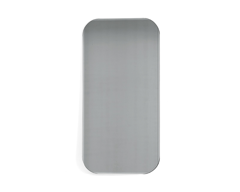 The Bevel large rectangular mirror is designed to highlight the refined processing of bronzed mirror glass. Its softly contoured outline is shaped by precisely executed bevels that follow the perimeter, occasionally interrupted to accentuate the mirror’s gentle curves.