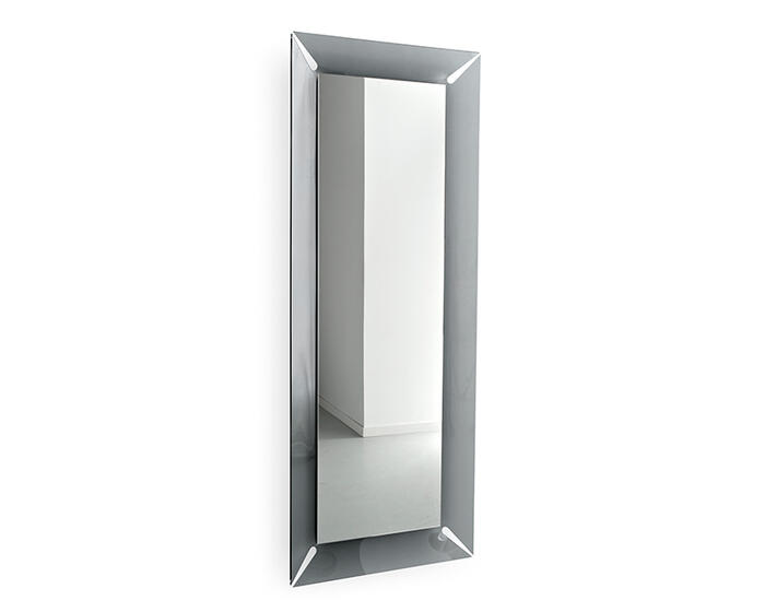 A distinctive 10 cm-wide frame made from curved silvered glass surrounds the reflective surface, introducing brightness and depth while giving the mirror its character. Balanced and visually clear, Pleasure integrates easily into hallways, living rooms, and bedrooms, where it enhances the space through light and reflection rather than ornament.