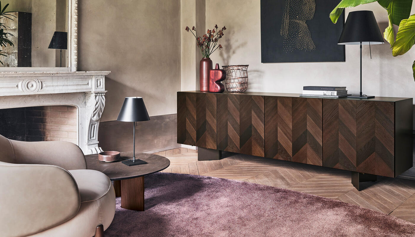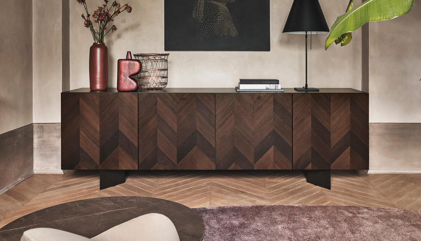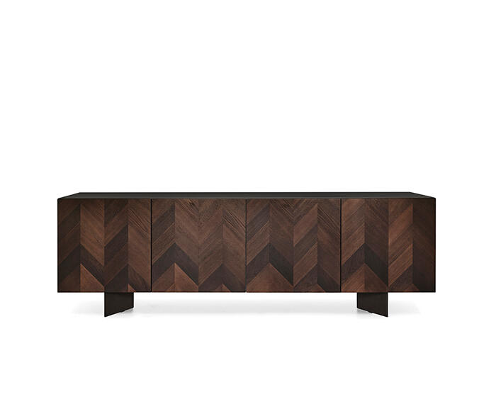 Intarsi, in its larger format, gives greater breadth to the artistry of its inlaid wooden front. The patterned surface draws from the tradition of marquetry, where precision and patience shape a composition rich in rhythm and depth. Wood remains the defining element, its natural variations bringing warmth and visual richness to the piece.