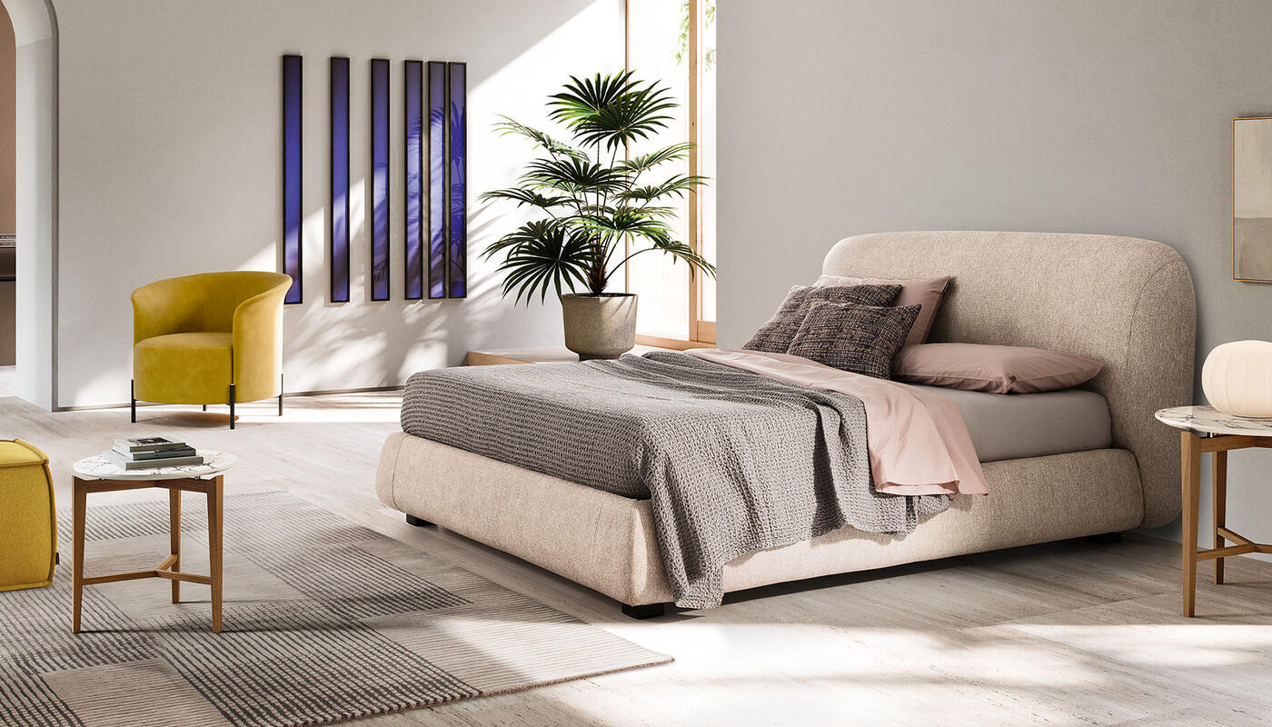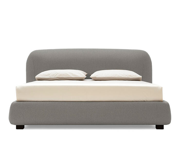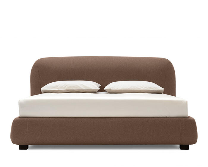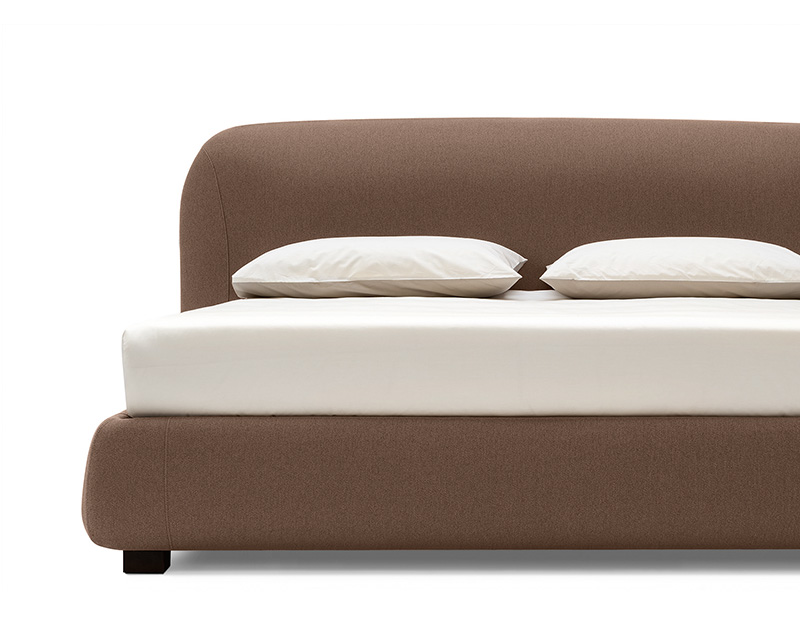 The apparent simplicity of the design conceals a complex execution: curved surfaces are carefully shaped and refined through stitching that traces and enhances their roundness. Noa is available in fabric, with the choice of a fixed frame or a version with an integrated storage compartment, allowing the bed to adapt to different spatial and functional needs.