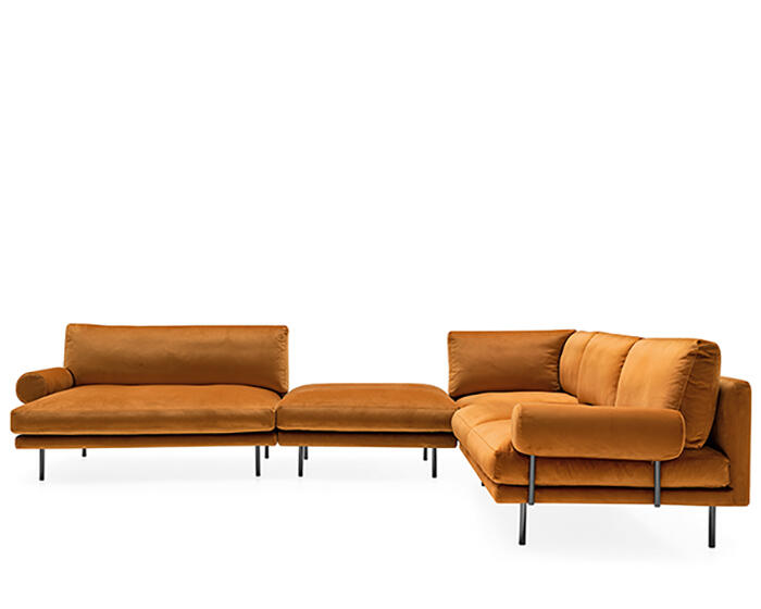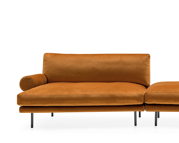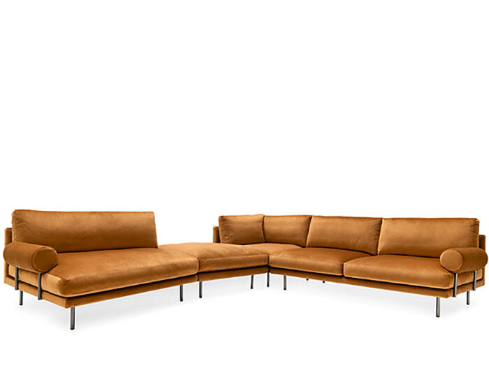 Mies is a modular sofa system that places comfort at the center of its contemporary design. Defined by generous seating depth and clean lines, it offers an inviting, relaxed posture across all configurations. Slender metal feet lift the structure lightly, reinforcing its modern character.